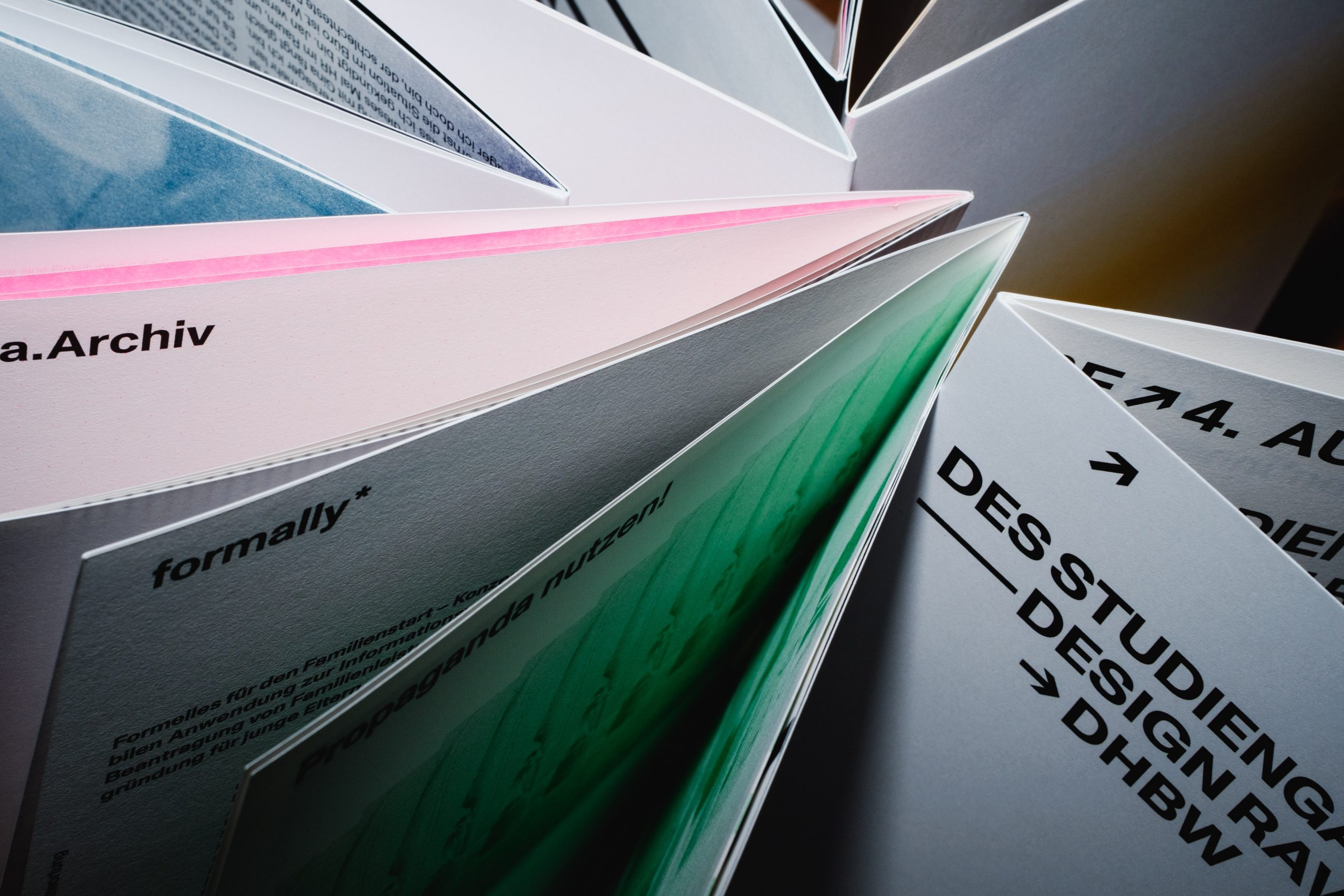 The fourth issue of Command E, our study programme magazine, is out! It is dedicated to the fascinating tensions between chaos and control, being explored in a dialog between students, alumni, partner companies and lecturers. While control suggests order, security and predictability, chaos is often associated with uncertainty and unpredictability and can be frightening. Yet it is precisely in this interaction where creative work and innovation is rooted. The current edition of Command E was developed as a non-linear concept and realized according to six aspects: Norm, Context, Development, Communication, Perspective and Sensation. Each aspect is treated and visualized as a separate episode. Held together by a slipcase, the loose episodes invite you to rearrange them again and again and create new thematic references. The entire magazine is thus to be understood as either/or, back and forth, or open/closed – as an embodiment of “chaos and control”. The choice of two types of printing – digital and RISO printing – results as a symbol for the influences that the content and design have on each other. The magazine was produced as a cooperative project over several months in collaboration with students, partner companies and lecturers. A great deal of voluntary work goes into each issue, and we are very grateful to everyone involved. Concept, editing, design and implementation: Prof. Dr. Markus Rathgeb, Max Stümpflen, Fynn Piepenschneider and Miriam Rein Special thanks to RISOFORT, Hamburg and the Ehrat printing company, Ravensburg Photos: Miriam Rein and Fynn Piepenschneider The magazine can be obtained for a donation from our degree program (contact: Student advisor Alena Schmidt-Weihrich schmidtweihrich@dhbw-ravensburg.de)