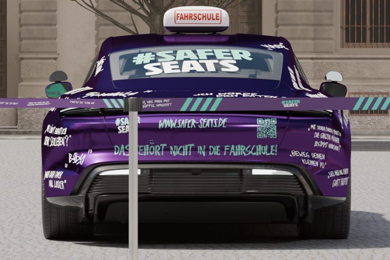Sexuelle Übergriffe sind schwer zu fassen – #SaferSeats macht sie greifbar. Im Mittelpunkt der Kampagne steht das interaktive „Safer Seats Car“, das die Besucher mit echten Worten von Fahrlehrern konfrontiert und sie zum Umdenken auffordert. Zur Safer Seats Organisation gehört auch eine Website mit weiteren Informationen und Hilfsangeboten. Plakat- und Social-Media-Kampagnen machen #SaferSeats bekannt und sorgen dafür, dass das Thema endlich die nötige Aufmerksamkeit bekommt.